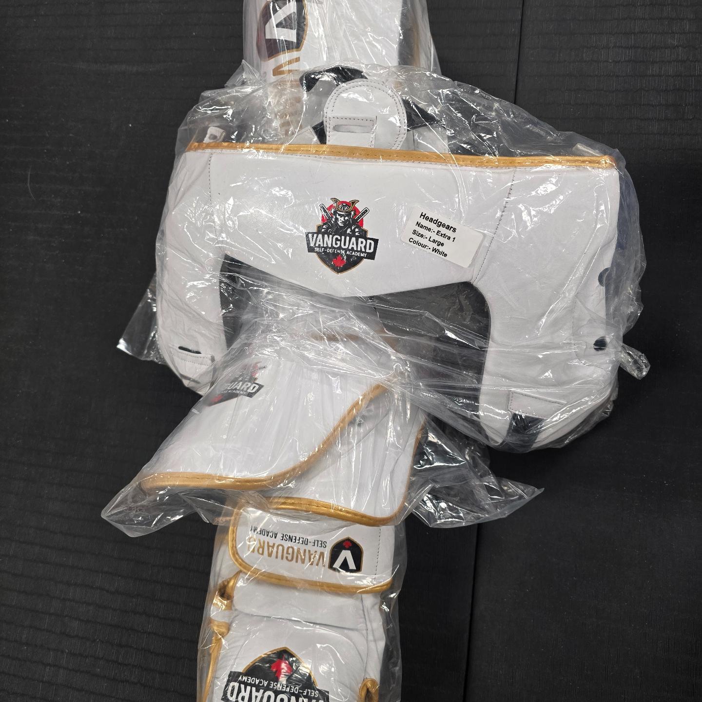 This kit includes, head protection, sparring gloves (hybrid 7oz), shin pads and a mouth guard.